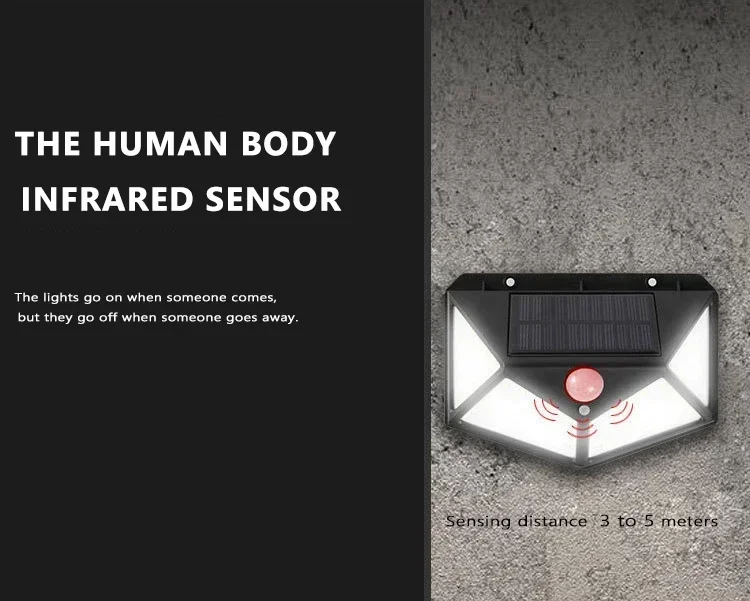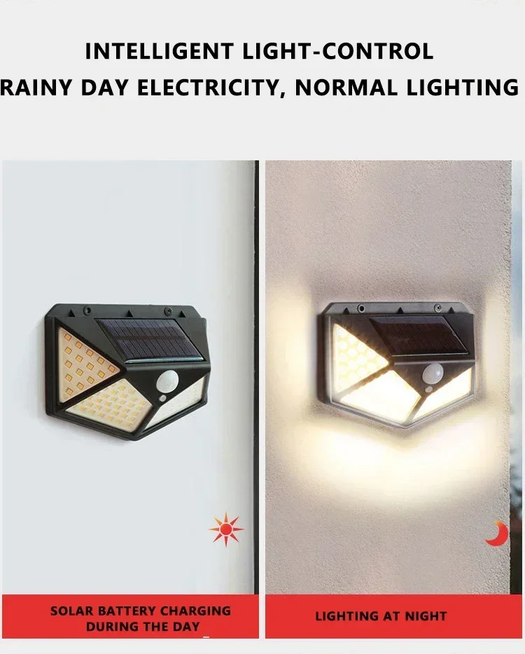 6.【Waterproof IP65 and Heatproof】The 100 led Solar Motion Sensor Light is great for wall, patio, garden, porch, lawn, pathway, Driveway , gutter, etc.. It's specifically designed to withstand extreme weather conditions.