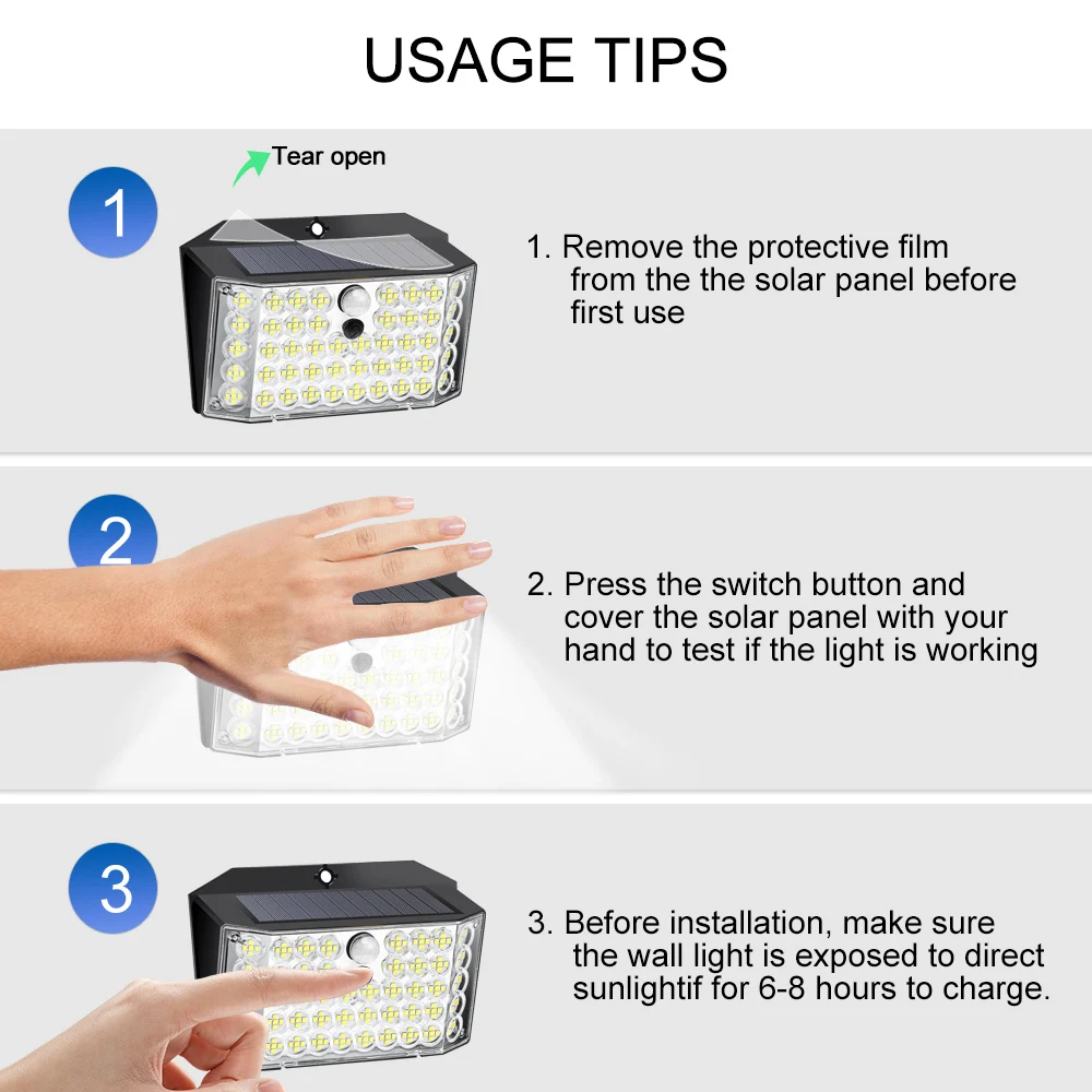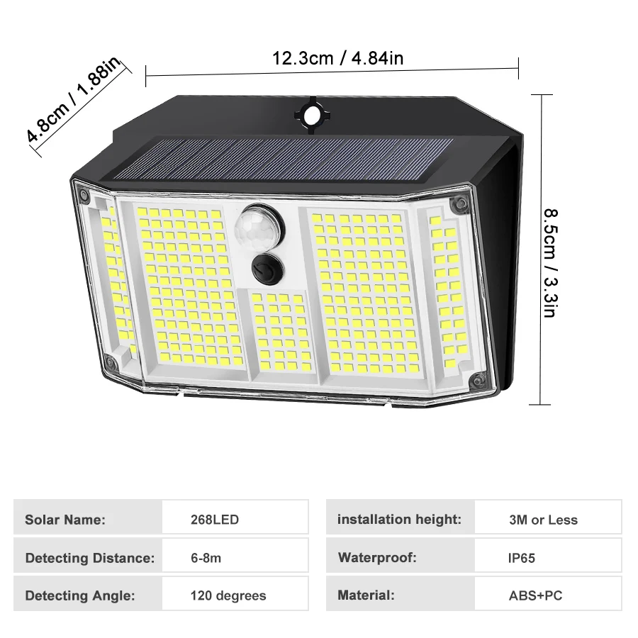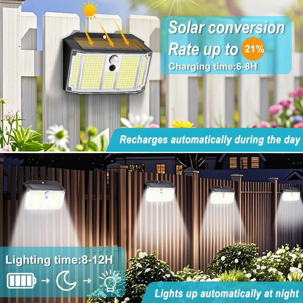 This upgraded solar and outdoor light with solar and motion sensors is very efficient (conversion rate of 20%). Charging for 6-8 hours during the day, the solar safety light outdoor motion sensor and outdoor motion sensor light can be used for a total of 8-12 hours. Even on cloudy days, solar powered safety lights and solar outdoor lights can maintain sufficient energy to work overnight. Choose outdoor solar lights, outdoor motion sensor solar safety lights, and solar garden lights. Let outdoor solar lights and motion sensor lights, outdoor solar safety lights, and outdoor motion sensors illuminate your life