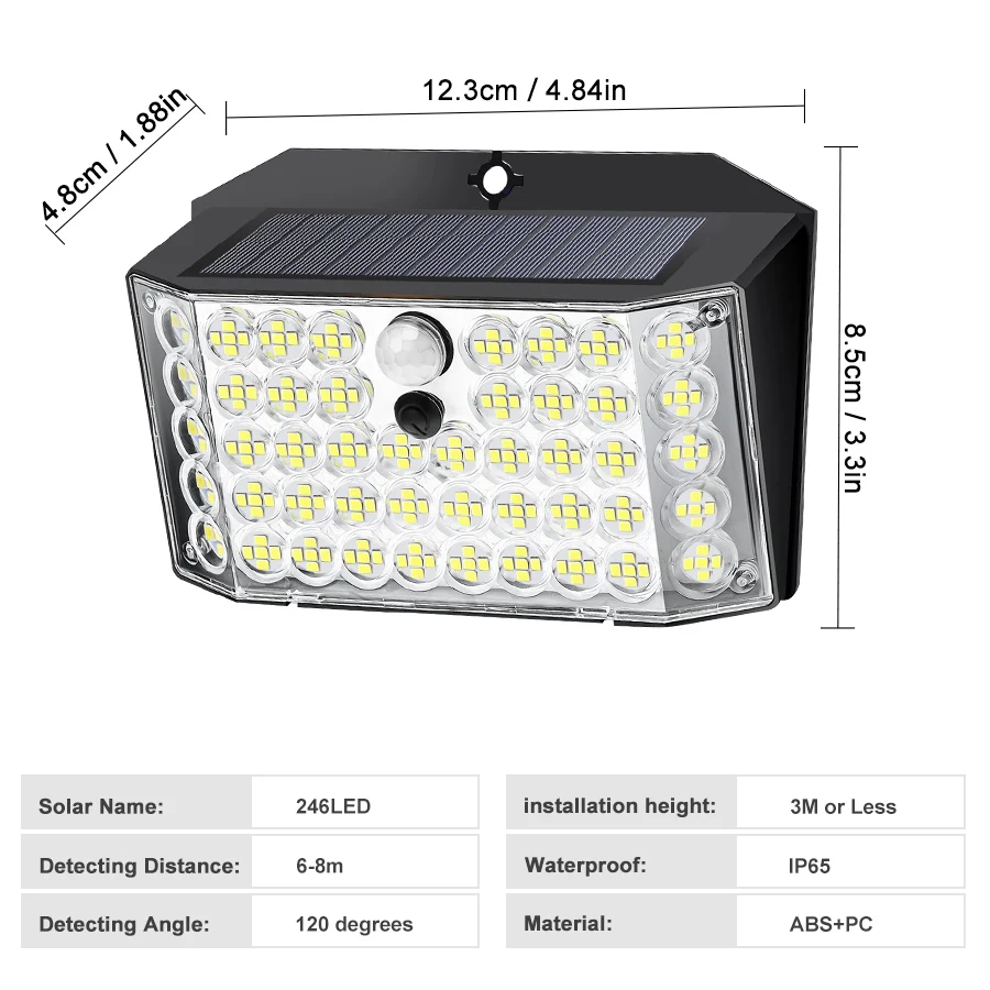 【Outdoor Garden 246LED Solar Light: The solar safety light outdoor motion sensor has 246 LED beads, which can illuminate the garden like during the day. Unlike other traditional outdoor motion sensor lights, outdoor solar lights and outdoor solar safety lights have lens designs that can provide a wider illumination range. The outdoor light with motion sensor can illuminate an area of 25-30 square meters with solar energy. Choose a solar powered induction safety light. Let the solar powered outdoor garden motion sensor outdoor light illuminate the darkness in your life.