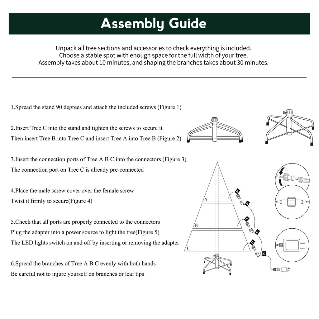 QUICK ASSEMBLY & STORAGE – Hinged branches and a foldable stand make annual setup and storage effortless.