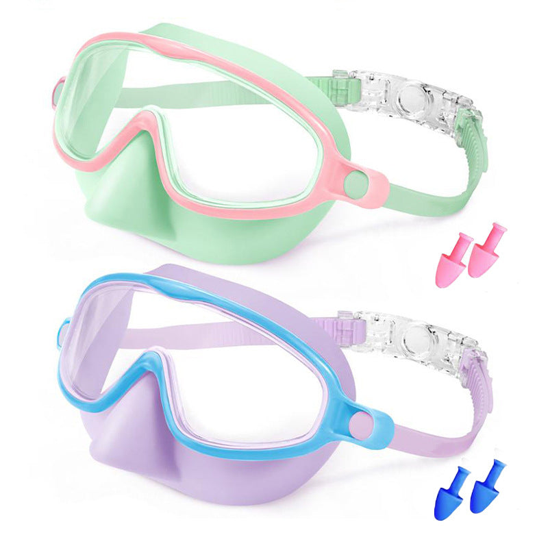 Children's Swimming Goggles With Nose Mask To Prevent Choking, Large Frame, Wide Field Of View, Diving Mask, Anti-Fog Swimming Goggles