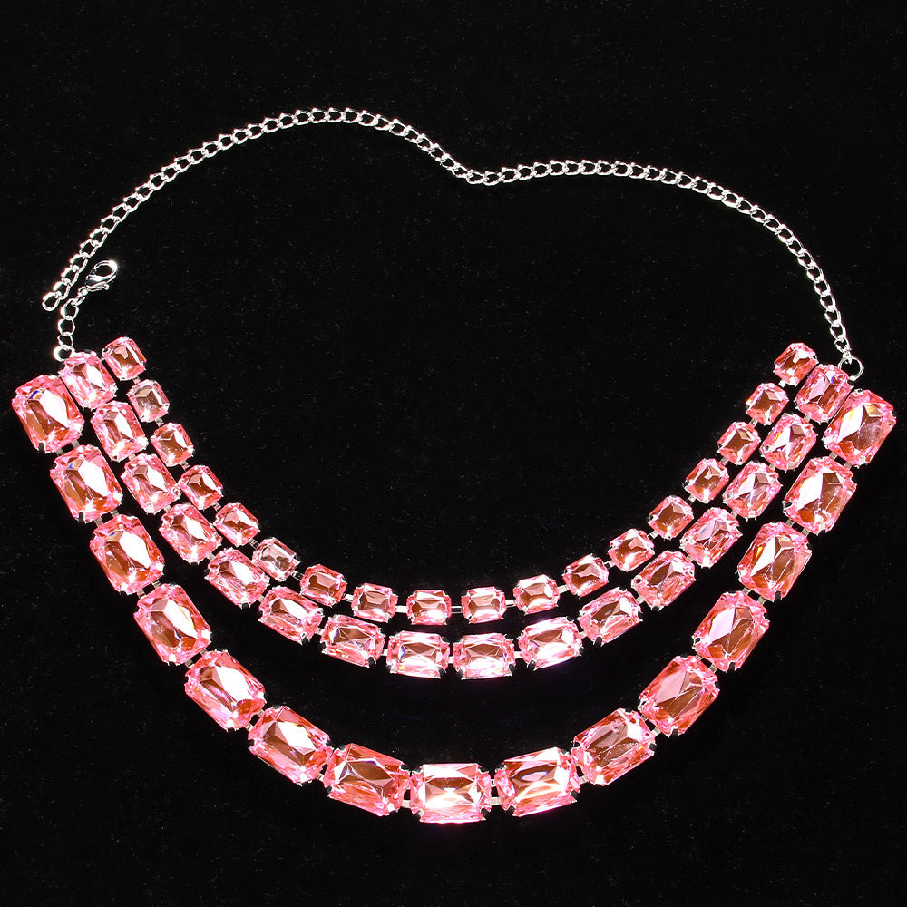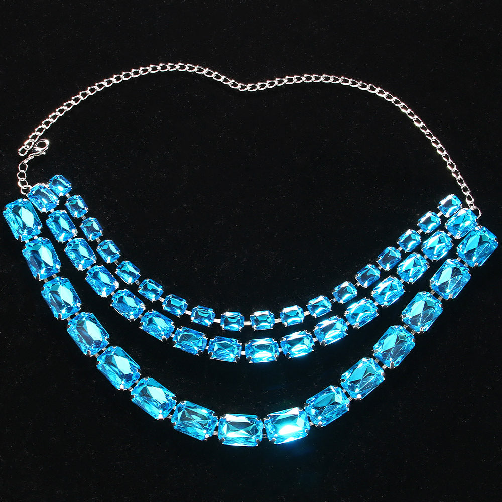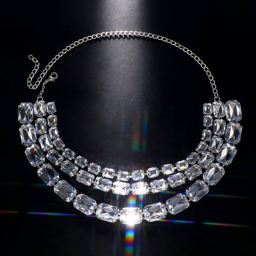 Cross-Border Hot-Selling Colorful Multi-Layered Square Diamond Necklace, Personalized And Versatile European And American Style Exaggerated Full-Diamond Clavicle Chain Necklace