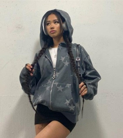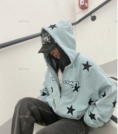European And American Street Clothing Hoodie Zipper Sweatshirt A Figure To Make Gothic Jacket Jacket Coat Stars