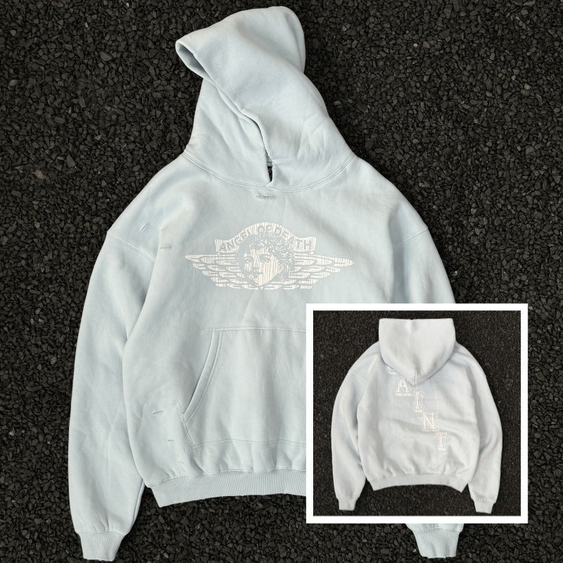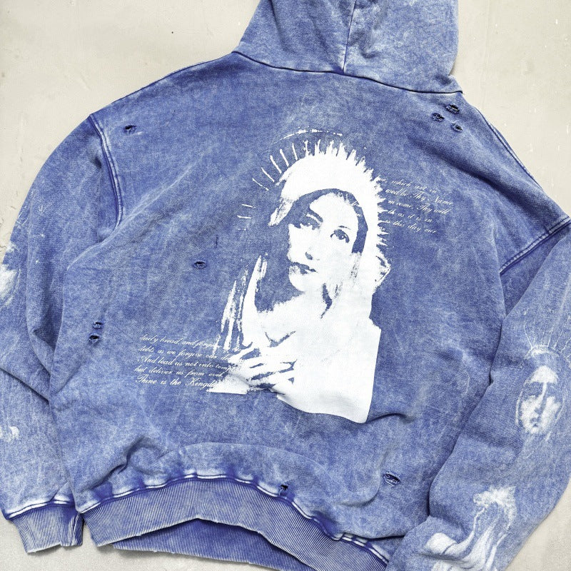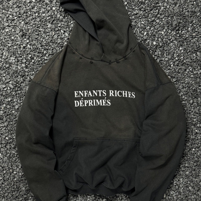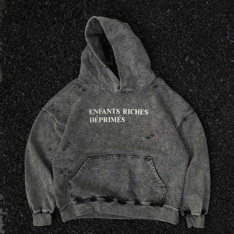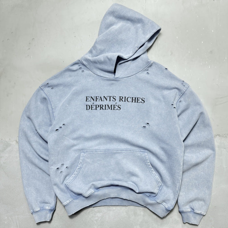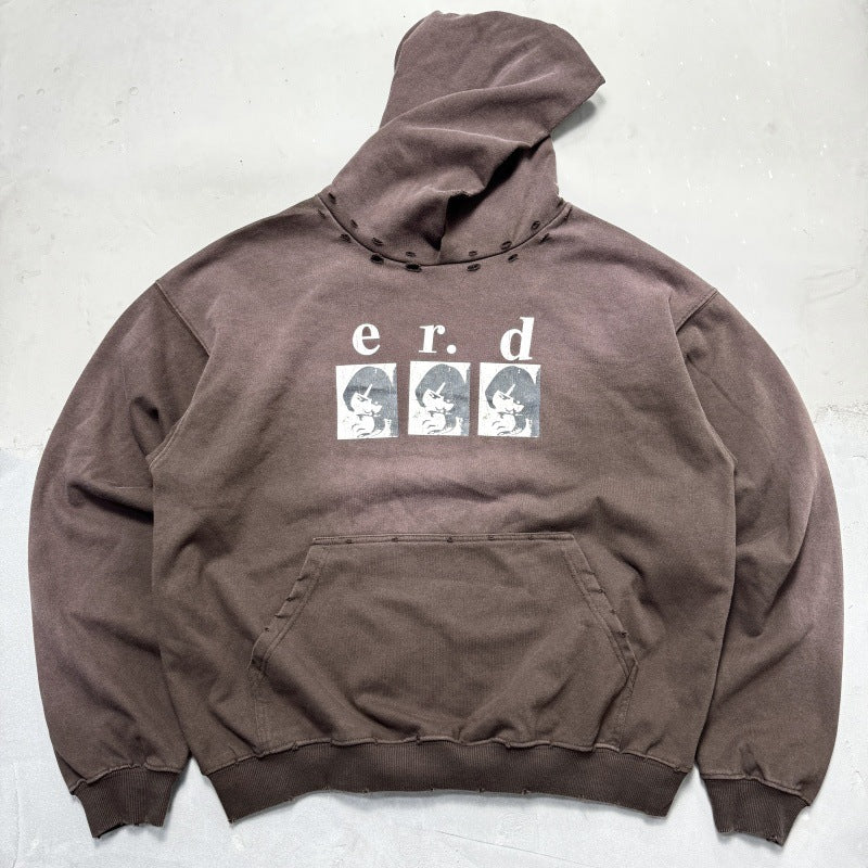 High Street Hooded Sweatshirts For Men And Women, Loose Couple Jackets, Embroidered Trendy Basic Popular Hip-hop Distressed Jackets