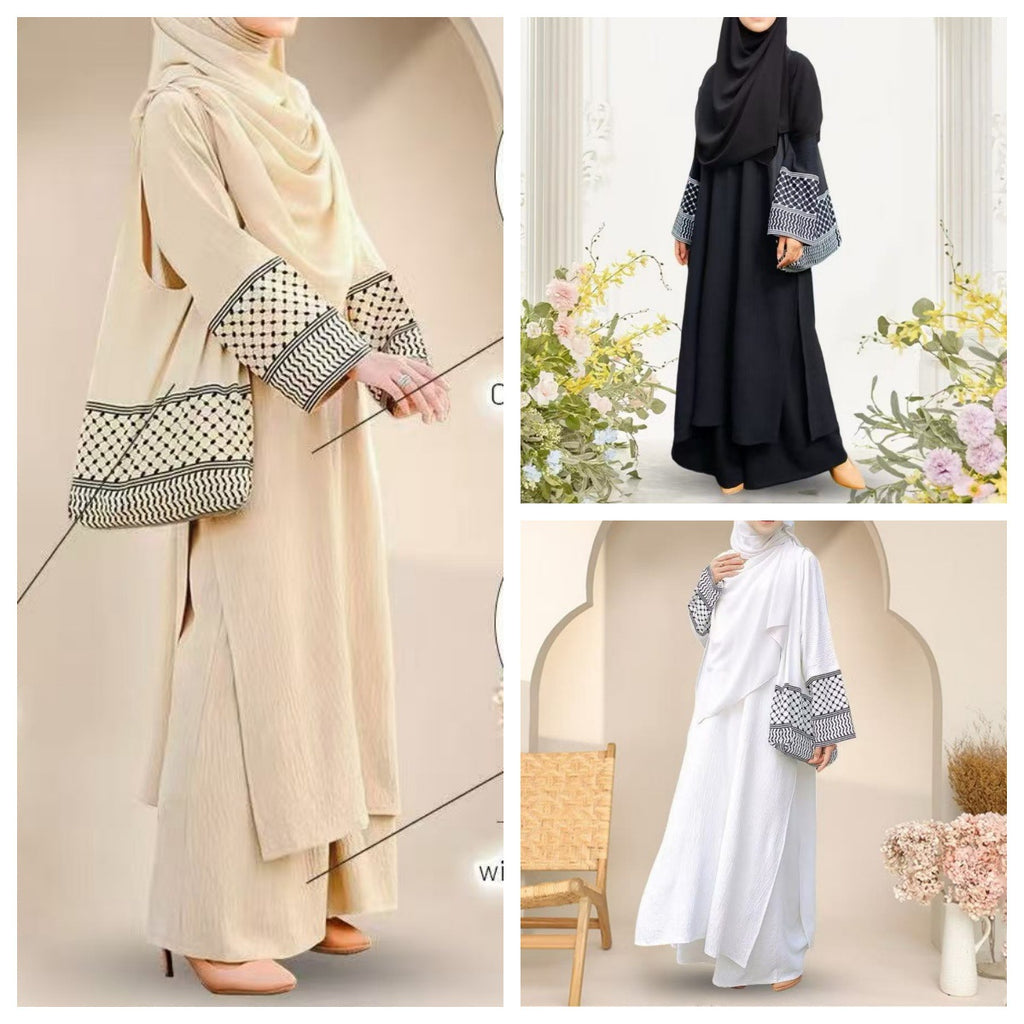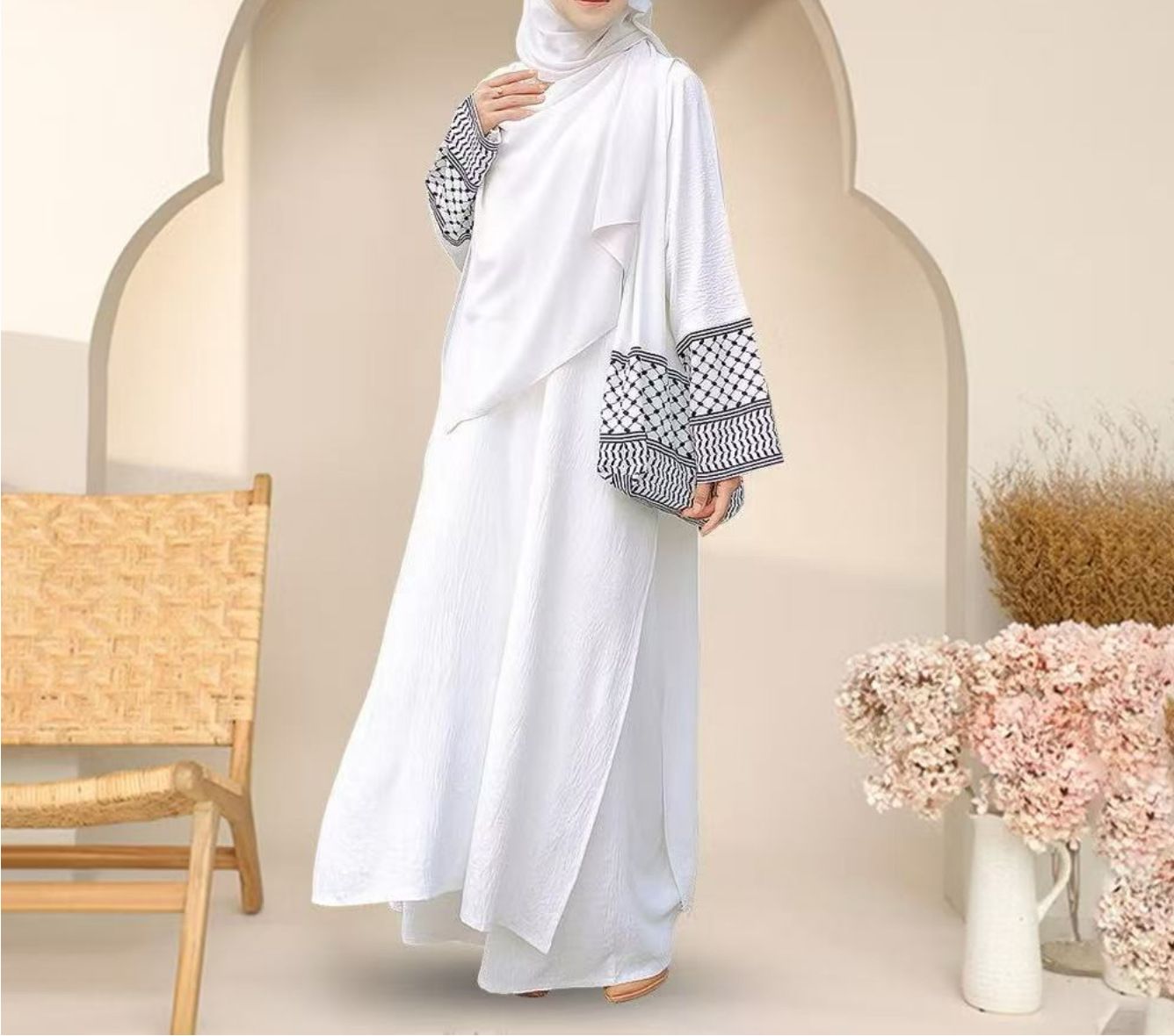 In Stock 2025 New Three-Piece Set Muslim Southeast Asian Solid Color Cotton Linen Wrinkle Fashionable Loose Plus Size Robe