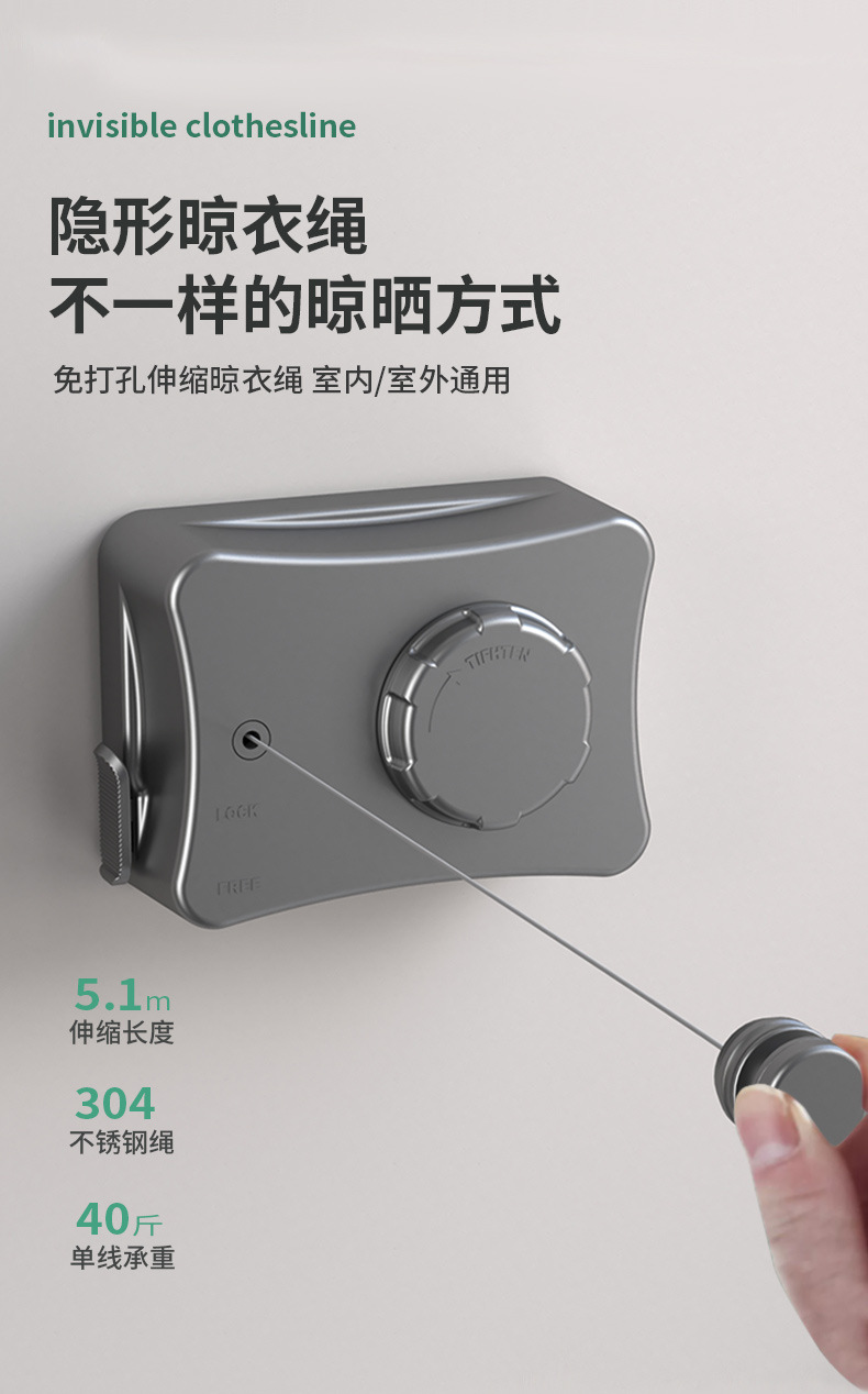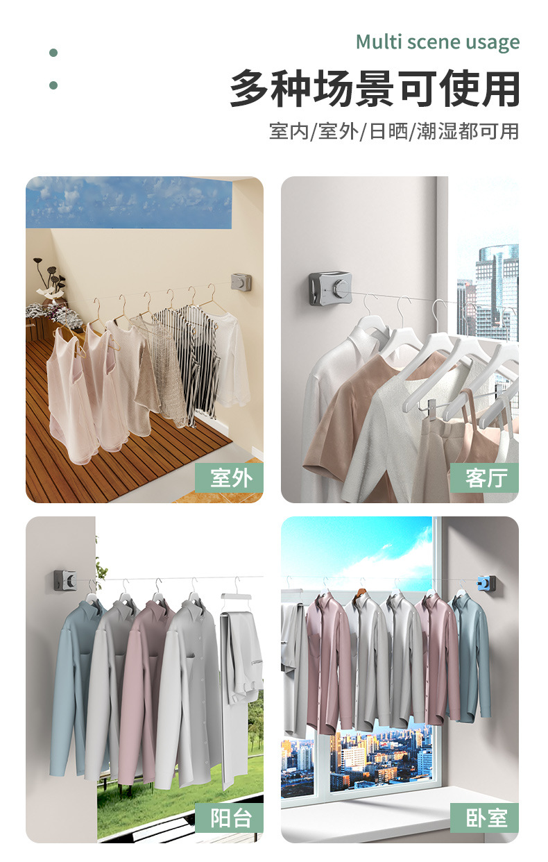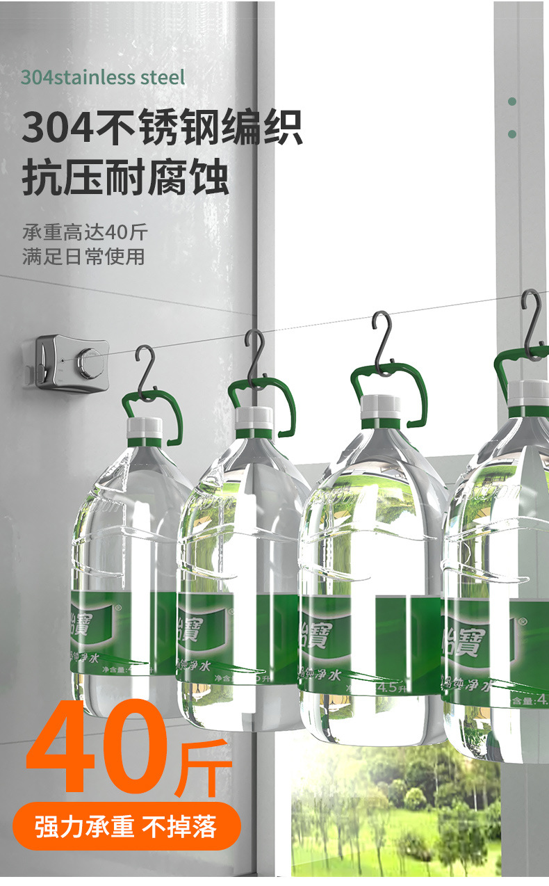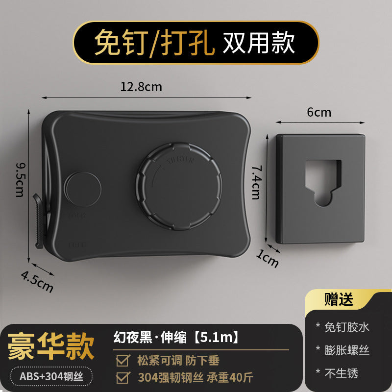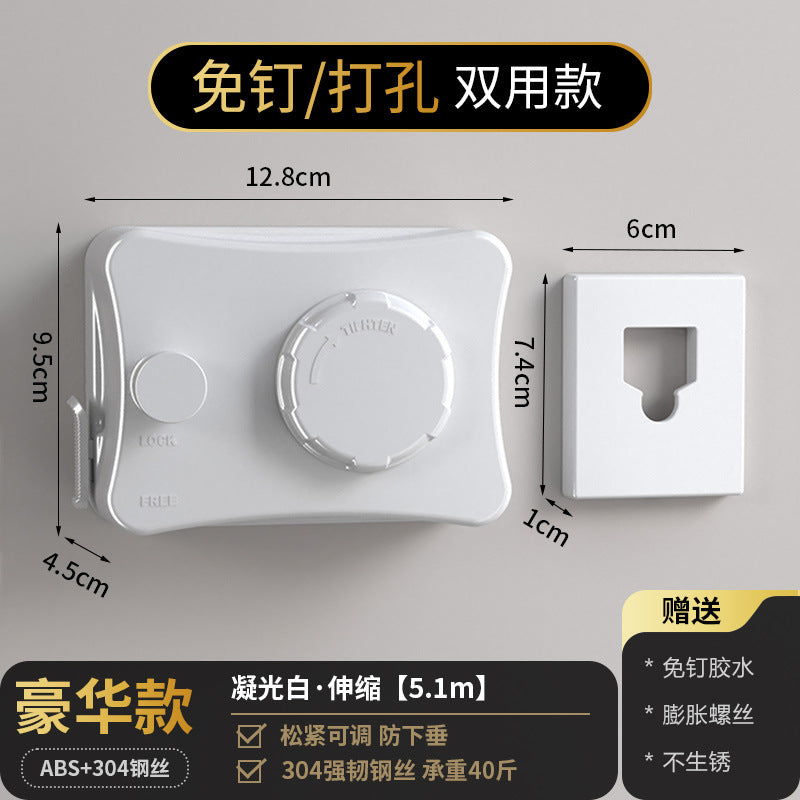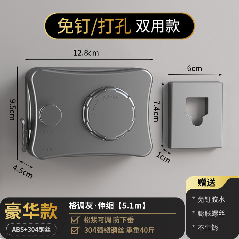 Invisible Clothesline Shrink Clothes Drying Artifact Indoor Punch-free Bathroom Retractable Balcony Steel Wire Rope Rack