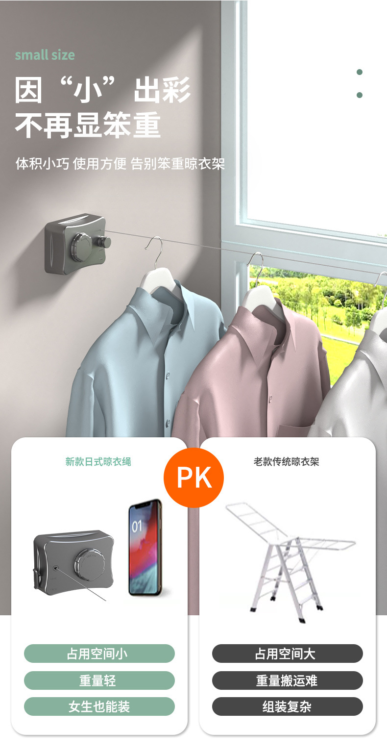 Color: White-5.1m camera clothesline (dual use)