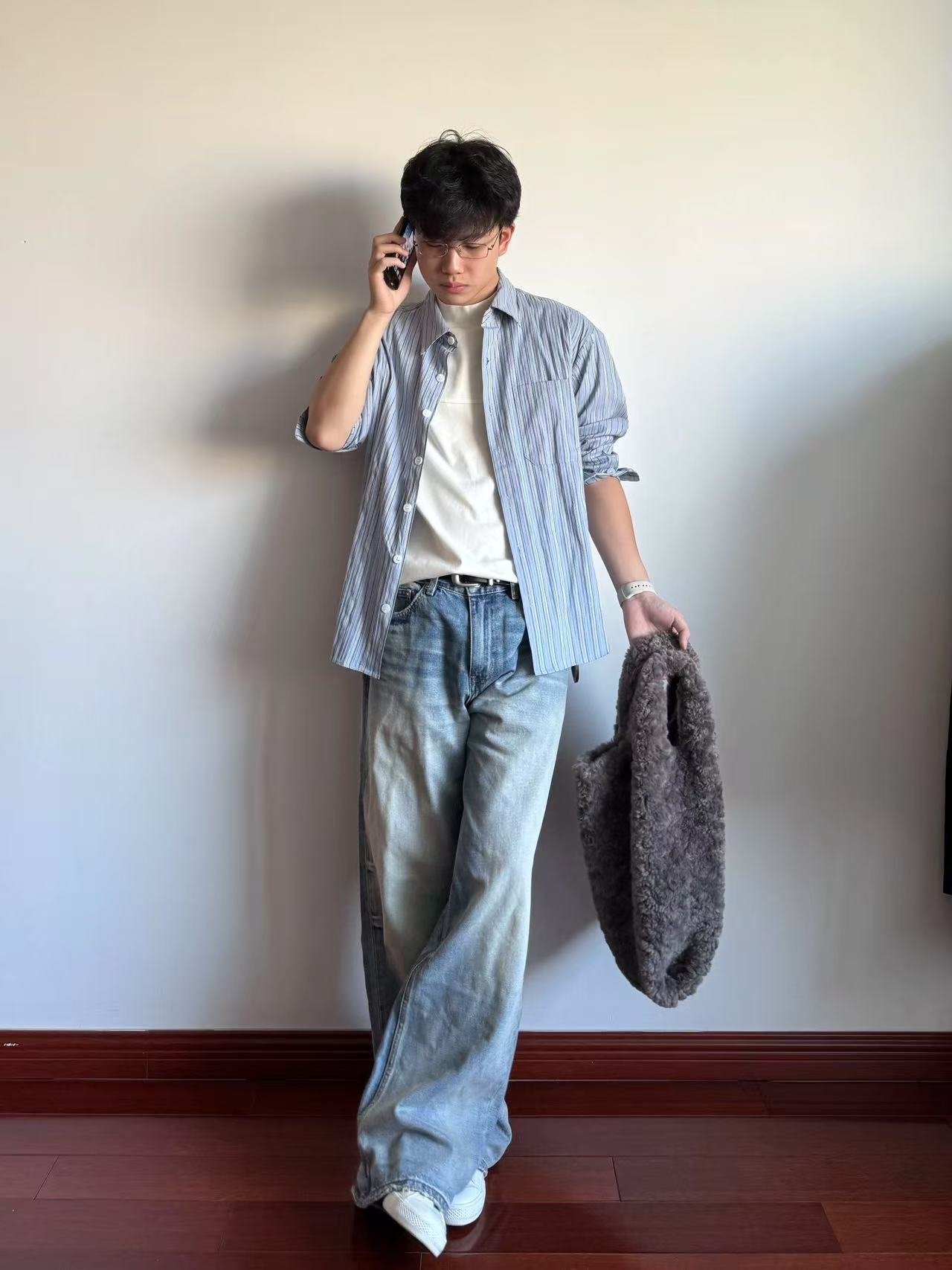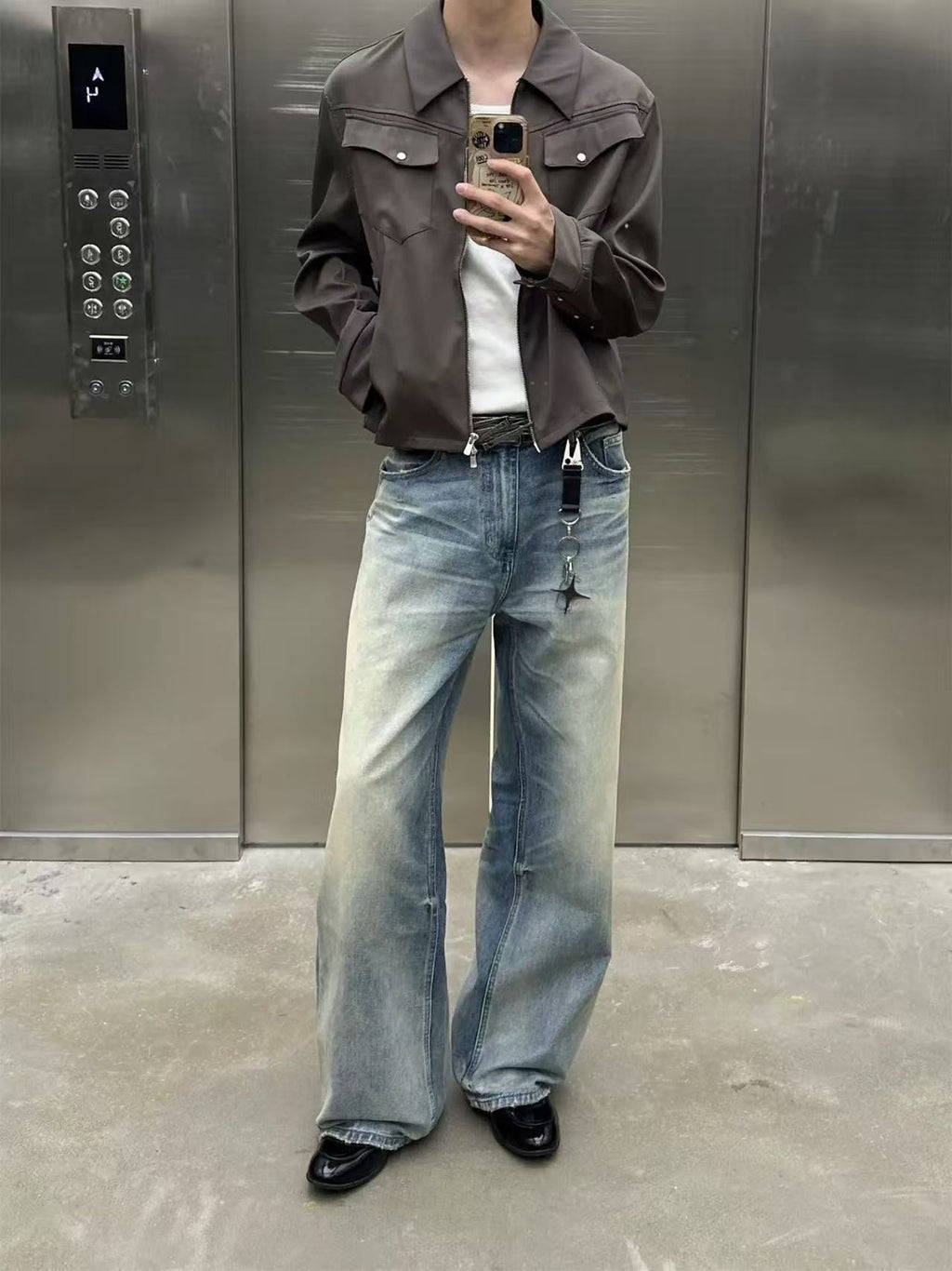 New 25Ss Ox King Series 05 A-line Version Washed Blue Straight Loose Cleanfit Jeans