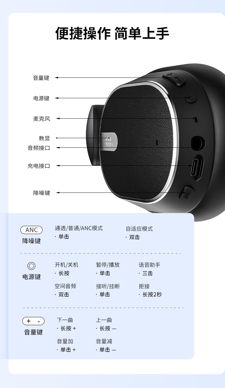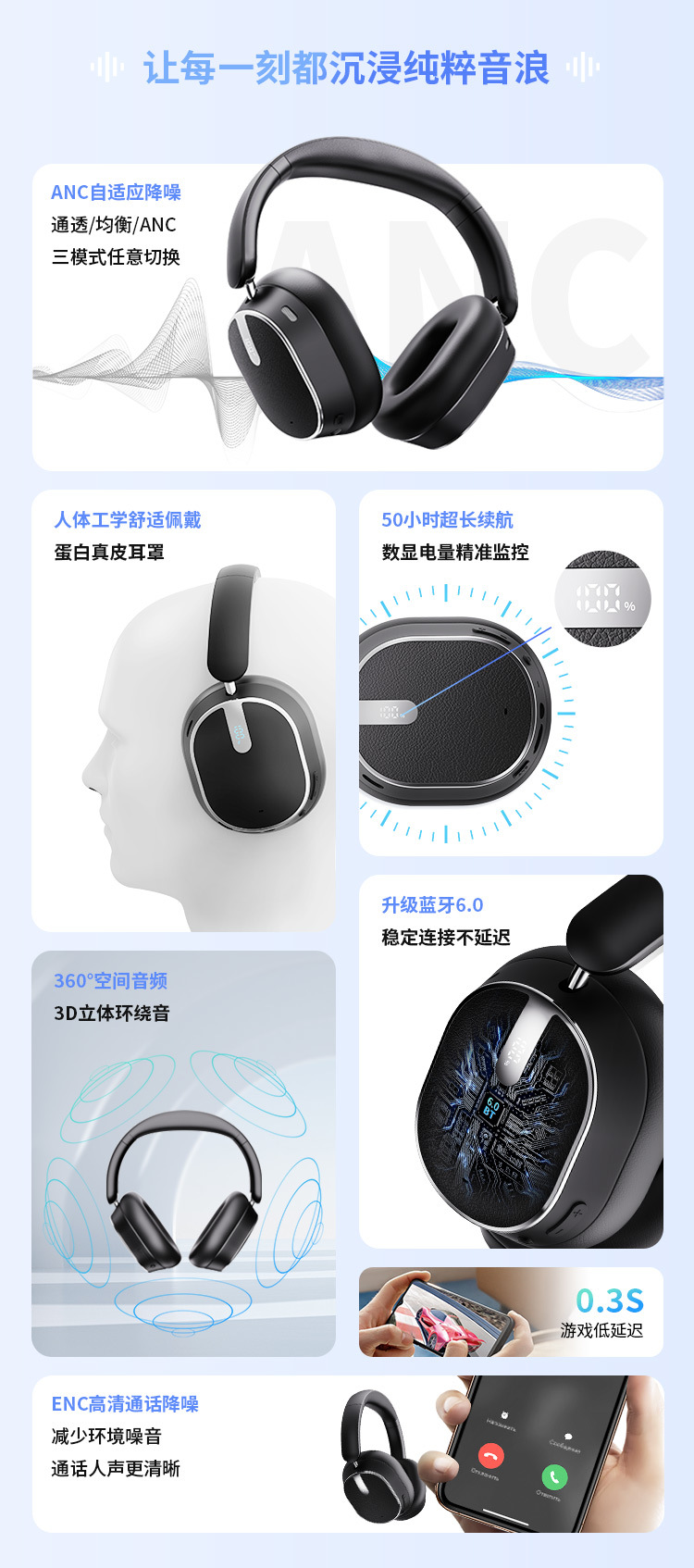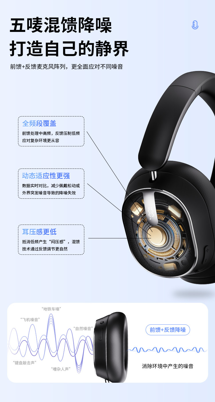 New Private Model ANC Active Noise Reduction Five-mark True Wireless Headset E-sports Low-latency Gaming Bluetooth Headset