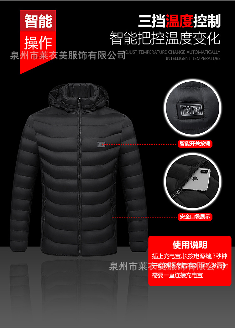 Smart Heating Clothing Winter Hooded Cotton Clothing Heating Heating Cotton Clothing